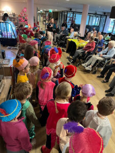 Op woensdag 26 november brachten alle kleuters, samen met juf Paula, een bezoek aan het woonzorgcentrum Sint-Barbara in onze straat. Daar zongen we met z’n allen mooie Sinterklaasliedjes voor de bewoners. De bewoners zongen enthousiast mee en genoten zichtbaar van het gezang van de kleuters. Het was een fijn en hartverwarmend moment. Mooi om deze mensen op deze manier een mooie dag te kunnen bezorgen!