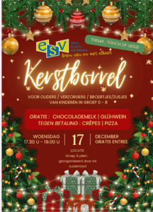 Vanuit de Ouderraad wordt dit jaar ook een ‘ouderborrel’ georganiseerd. Vanaf 17.30 uur bent u als ouder van harte welkom op het groep 8-plein voor deze gezellige ouderborrel. Uw kinderen die nog niet naar school gaan mogen uiteraard mee. Vanuit school bieden wij warme chocolademelk en glühwein aan (op=op) en voor iedereen ligt er een lekker kerstkoekje klaar.